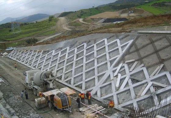 現(xiàn)澆混凝土截水骨架植草護坡工程是指一種邊坡防護措施,利用鋼筋籠和混凝土澆筑成型工藝在邊坡上形成框架,在框架內(nèi)鋪設(shè)種植土,然后鋪設(shè)草皮,噴灑草種???span>保護基礎(chǔ)設(shè)施,草坪生長以減少邊坡沖刷,避免人工種植草坪護坡和平鋪草坪護坡的缺點。適用于各種土壤和強風(fēng)化巖石邊坡,邊坡高度低,施工進度慢。